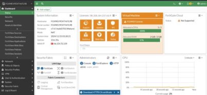 14. Son olarak Browser’a gidip belirledğimiz IP adresini giriyoruz. Kayıt olduğumuz mail ve parolayı kullanarak 15 günlük deneme lisansını aktif hale getiriyoruz. Mail ve parola ile giriş yaptıktan sonra bizi fortiGate dashboard’a yönlendirecektir.
